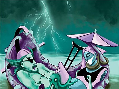 No to nevím. Řekl bych, že momentálně vypadám ještě mladší. Všechno to začalo tím, že mě Tereza v létě, kdy byla práce na „Truchlohrách“ v plném proudu, kontaktovala s tím, že je velkou fanynkou mé hudby a zdali bych nestál o nějakou spolupráci. Ozvala se v pravou chvíli, jelikož jsem si stále marně lámal hlavu tím, jak tentokrát nové album budu vizualizovat a jak pojmout obal. Nastudoval jsem si její práci a její dílo mě naprosto odrovnalo. Jo, to je přesně ta holka, která dá „Truchlohrám“ tu pravou podobu. Začal jsem jí posílat texty skladeb a ona obratem posílala skici k ilustracím. Stačilo trochu nasměrování, konzultace ohledně barevnosti a bylo to tam. Miluju ty její surrealistické obrazy. Nechal jsem si před Vánoci vyrobit jejich digitální tisky na půlmetrová plátna a zdobí mi teď ústřední stěnu v mém „parádním“ obýváku.