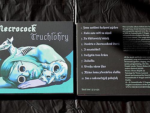 A jó. Měla to být myslím „Lesní hudba“, ale někde se to zaseklo, ani už nevím kde, na jakým bodě. Ale to je fuk. Je mně to celkem jedno a nějak zvlášť nevyzdvihuji vinyl nad pěkně zabalený cédéčko, zvlášť když je umístěno v luxusním digipacku se sametovým laminem. Aktuální necrosituace je taková, že by na vinylu měly vyjít v půlce tohoto roku „Truchlohry“.